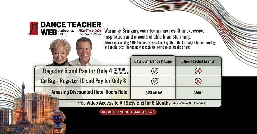 Ready to dive deeper into strategies like this? Join us this August 6-9 in Las Vegas for the Dance Teacher Web Conference and Expo to get the tools you need to transform your studio—plus, your registration includes 6 months of free video access to all sessions so you never miss a beat!