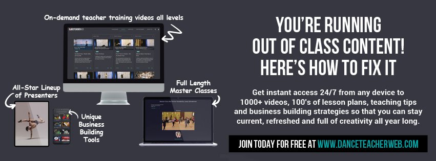 Did You Know? That Dance Teacher Web is the LARGEST online resource for dance teachers and studio owners with 1000+ videos, 100's of articles and lesson plans so that you can stay current and creative all year long. For the busy Dance Studio Owner, we offer fantastic articles on topics like marketing, how to get more students and increase revenue, business building video seminars, downloadable manuals, sample ads and forms that can help you increase your profits 30% or more!